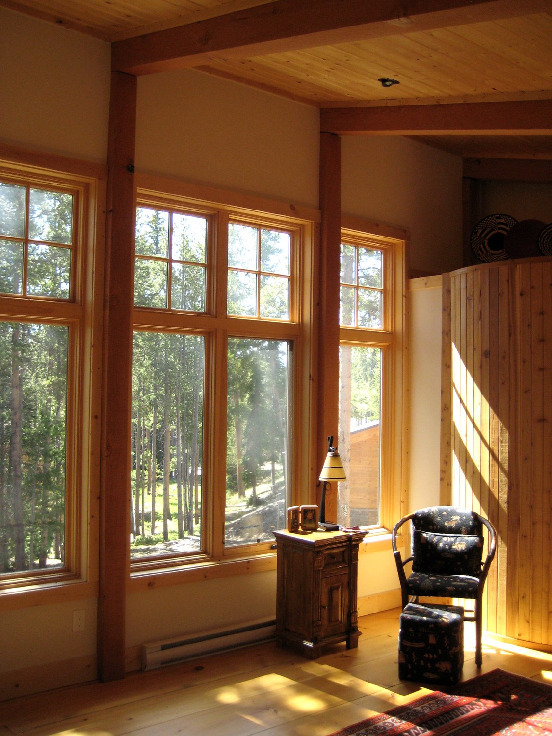 This project was an addition to an old eccentric ski challet. Repetition of the existing structurual modules provided a textural language between the old and new. We fit maximum programming into an affordable surround with ample privacy within the site. Connection with nature, at both the macro and micro scale, was an important part of the articulation.